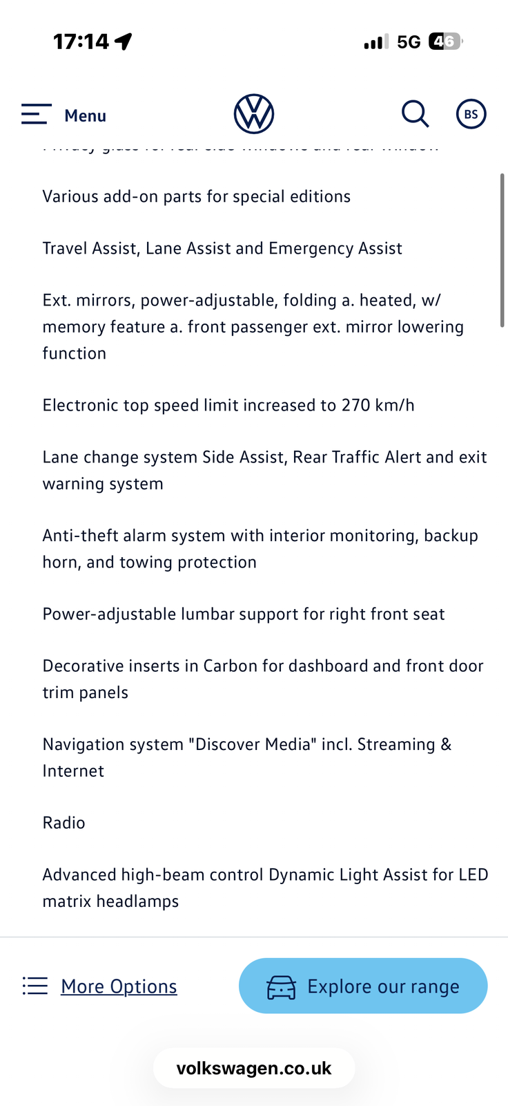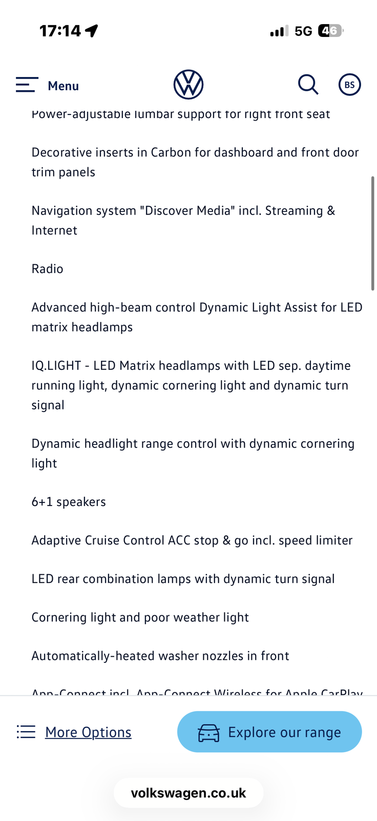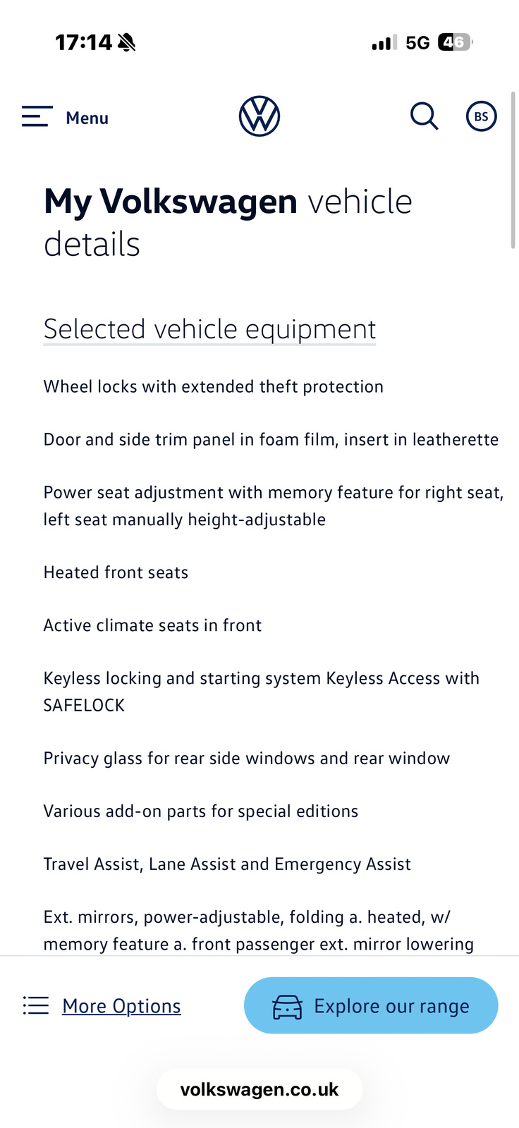 This is the manufacturer's list specification for this model, please verify the details when you view the vehicle. The list below will not include any additional options fitted to the vehicle or modifications.